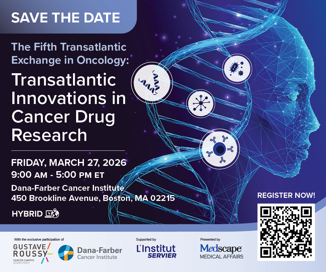La cinquième édition des Transatlantic Exchanges in Oncology se tiendra le 27 mars 2026 au Dana-Farber Cancer Institute à Boston. Cette édition, intitulée Transatlantic Innovations in Cancer Drug Research, réunira des experts de premier plan des deux côtés de l’Atlantique pour échanger autour des avancées en recherche en oncologie et en innovation thérapeutique. L’événement se déroulera en format hybride, permettant une participation en présentiel ou à distance.